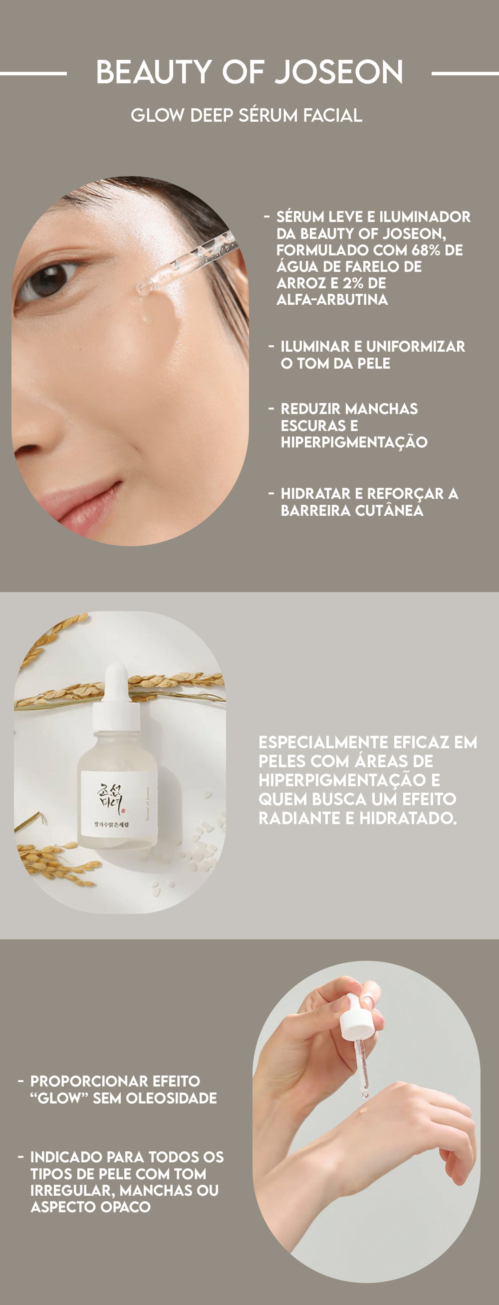 Um sérum leve e iluminador da Beauty of Joseon, formulado com 68% de água de farelo de arroz e 2% de alfa-arbutina. Combina ativos de origem vegetal para promover viço natural, hidratação e conforto sem irritar. Iluminar e uniformizar o tom da peleReduzir manchas escuras e hiperpigmentaçãoHidratar e reforçar a barreira cutâneaProporcionar efeito “glow” sem oleosidade Indicado para todos os tipos de pele com tom irregular, manchas ou aspecto opaco. Especialmente eficaz em peles com área...