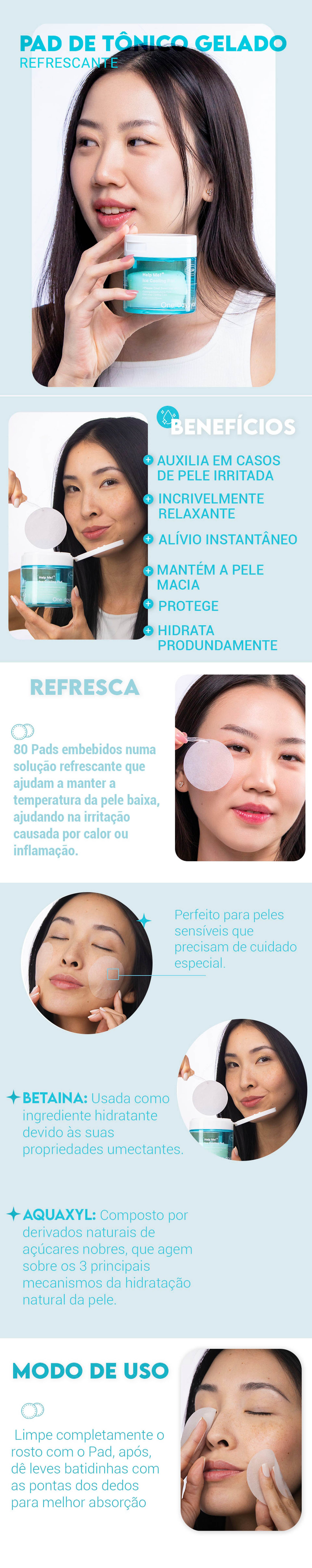 Conjunto de 80 Pads embebidos numa solução refrescante que ajudam a manter a temperatura da pele baixa, ajudando na irritação causada por calor ou inflamação. Ajuda e desinchar, regular temperatura, pode ser versátil e auxiliar quem tem Rosácea ou auxiliar a baixar a temperatura em casos de febre. Sua ação refrescante e geladinha atua no fechamento dos poros e também hidrata profundamente. Perfeito para peles sensíveis que precisam de cuidado especial. ✔️ Auxilia em casos de pele irritada;...